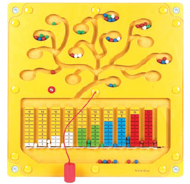 有了這個彩色果樹,計數成了一個有趣的遊戲。55顆珠子在兩個磁鐵棒的帶動下可自由活動,並且可以根據顏色和數量分類。訓練顏色辨別以及分類能力。