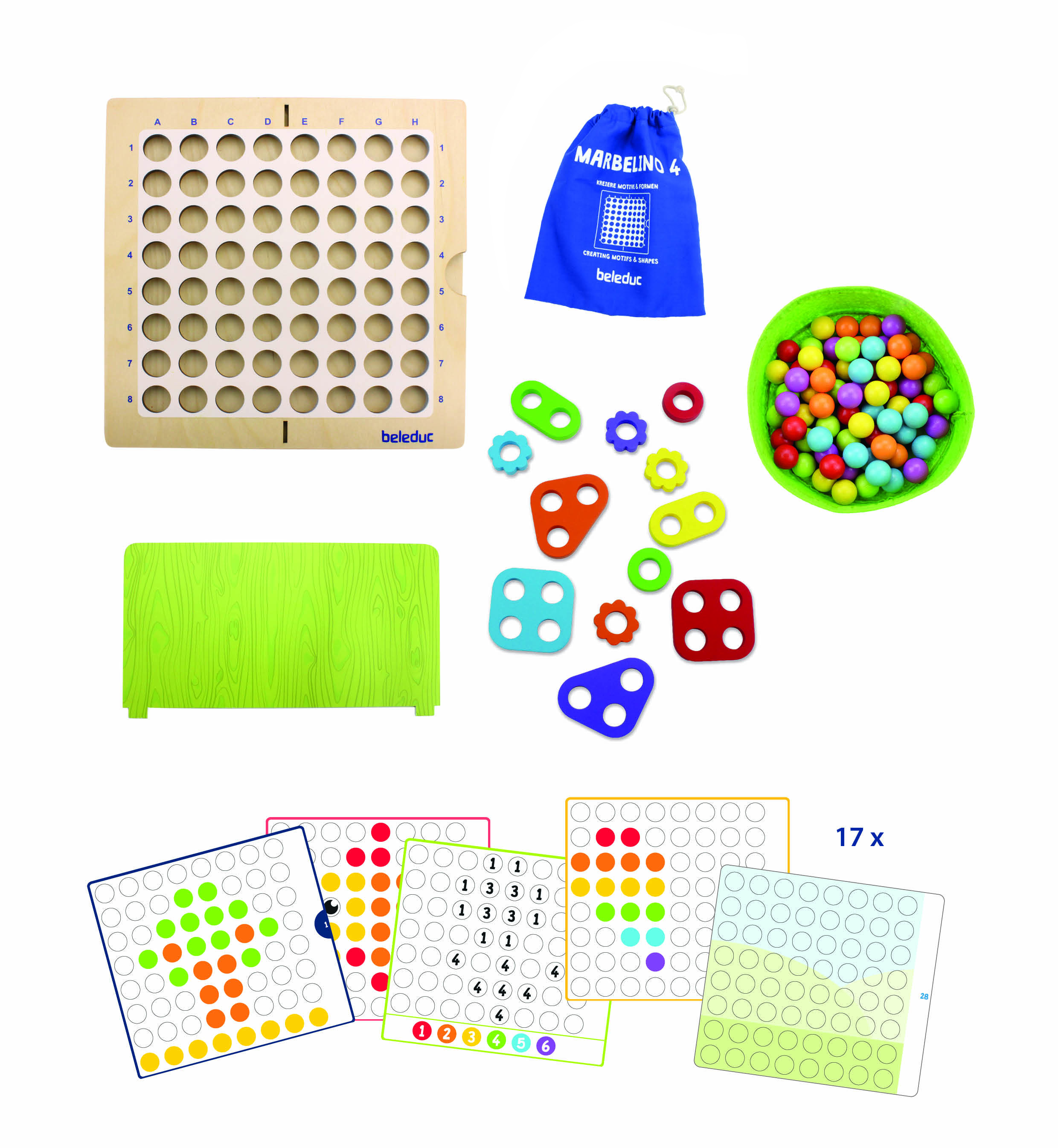 這款包含彩色球和木製形狀的分類遊戲共有17張卡片,每張卡片都有不同的圖案、任務和建議,鼓勵孩子們發揮創意,嘗試各種組合,甚至可以進行3D創作。既適合單人遊戲,也適合多人遊戲,能夠促進溝通與合作。