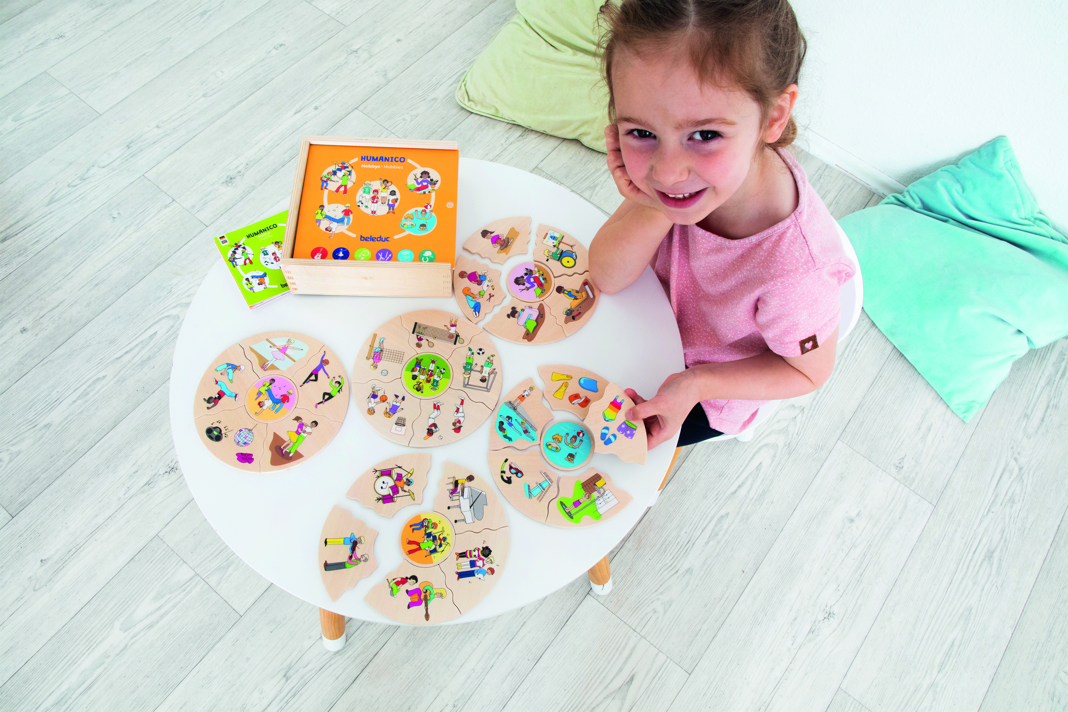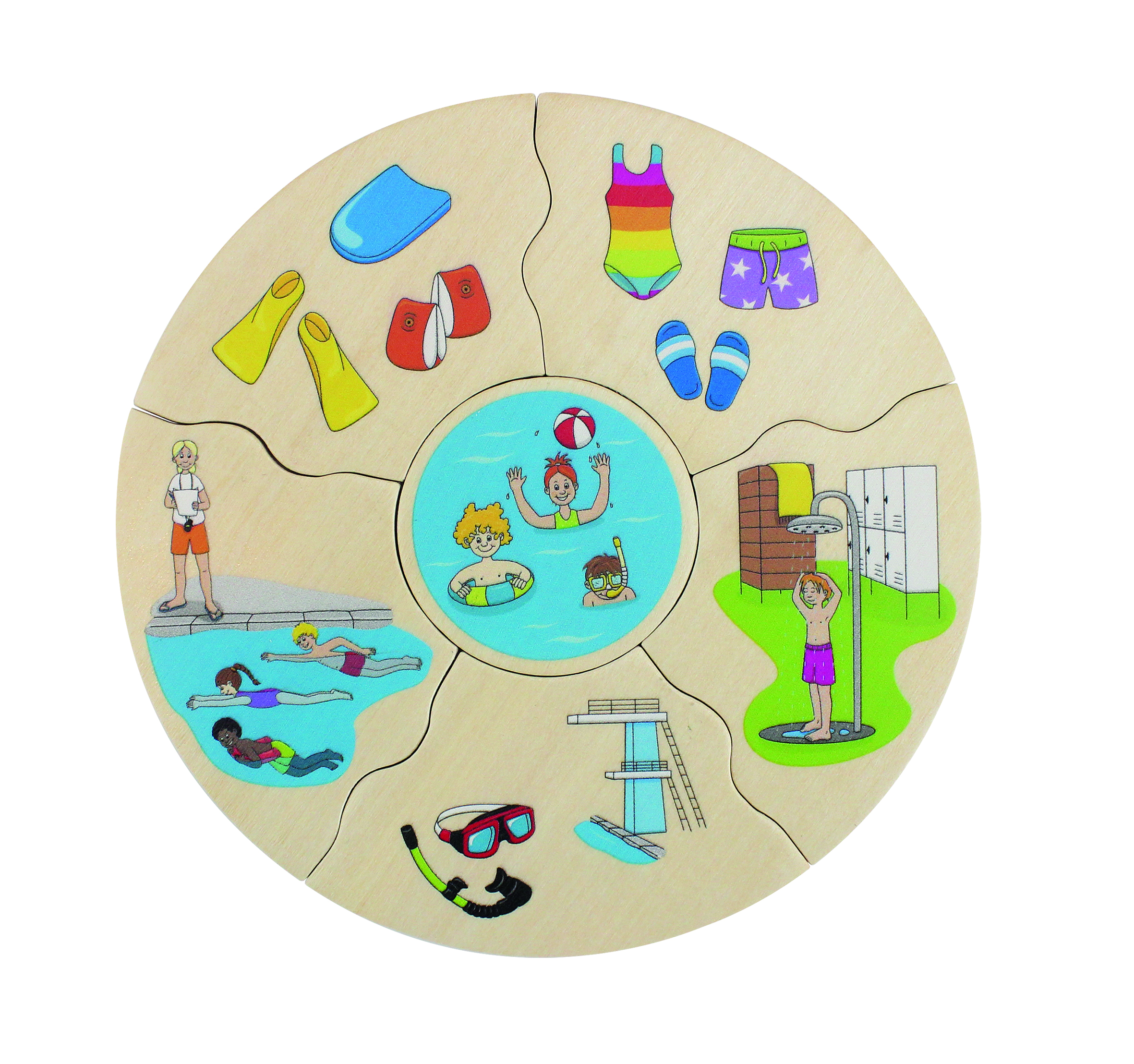 透過這款配對拼圖,孩子們可以了解不同的休閒活動。他們需要將合適的服裝、裝備和各種活動與六大愛好類別進行配對。