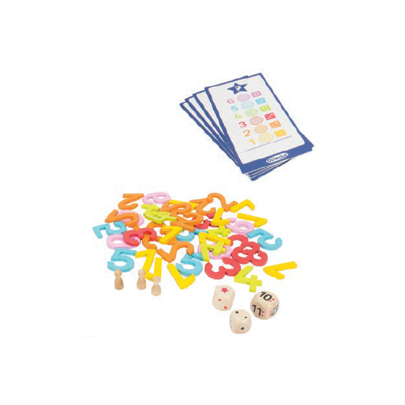 幼兒透過擲骰子獲得相對應數字積木,當手中的數字组合成目標數字後,就可以按照目標數字上的點數前進相對應的步數。培養幼兒計數概念和數學運算以及數字分解,訓練人際溝通能力。