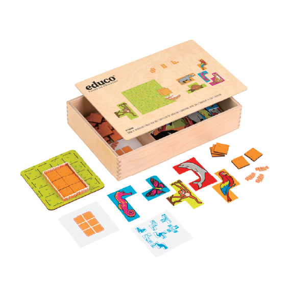 圍欄搭建在綠色草地上,鋪上黃色的泥土,根據圖案來放入對應的動物,計算面積和數量。